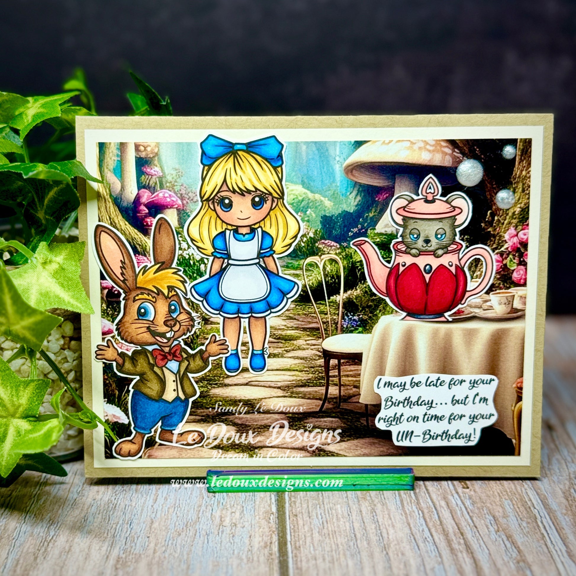 The Tea Time Madness stamp set features a clear polymer design showcasing iconic characters from Alice in Wonderland, including Mad Hatter, Cheshire Cat, March Hare and the Dormouse. Ideal for detailed crafting projects, these stamps provide crisp impressions for creating enchanting storytelling scenes with precision and clarity. Perfect for card makers and scrapbookers seeking to bring a touch of Wonder to their work.