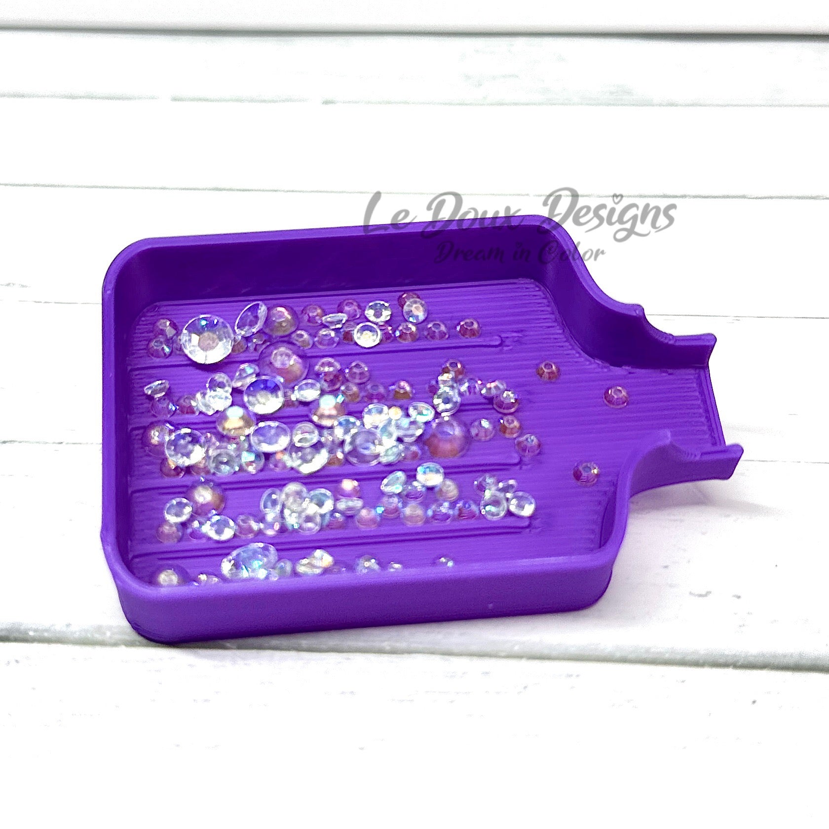 The Tidy Pour Tray in purple is made from PLA, providing a reliable surface for precise pouring of bling or other crafting materials. Compact and handy, this tray enhances your workspace organization and workflow to place bling back into containers.